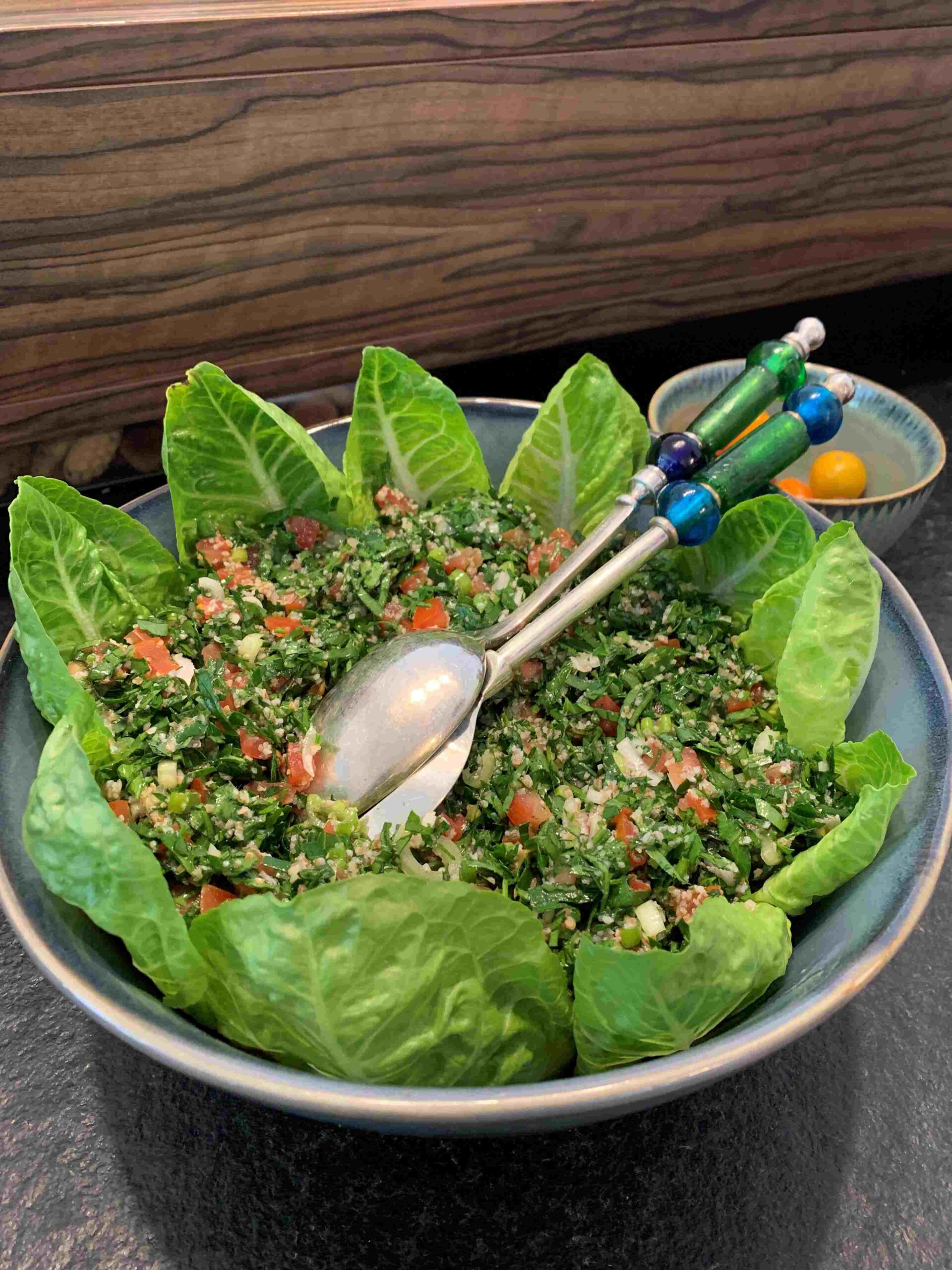 Drain the water and place the bulgur in a kitchen cloth. Wring to drain any excess water. Add the bulgur to the parsley mix. Toss right before serving by adding the lemon juice, the olive oil, and the salt to the parsley and mix well. Add pepper if desired.
